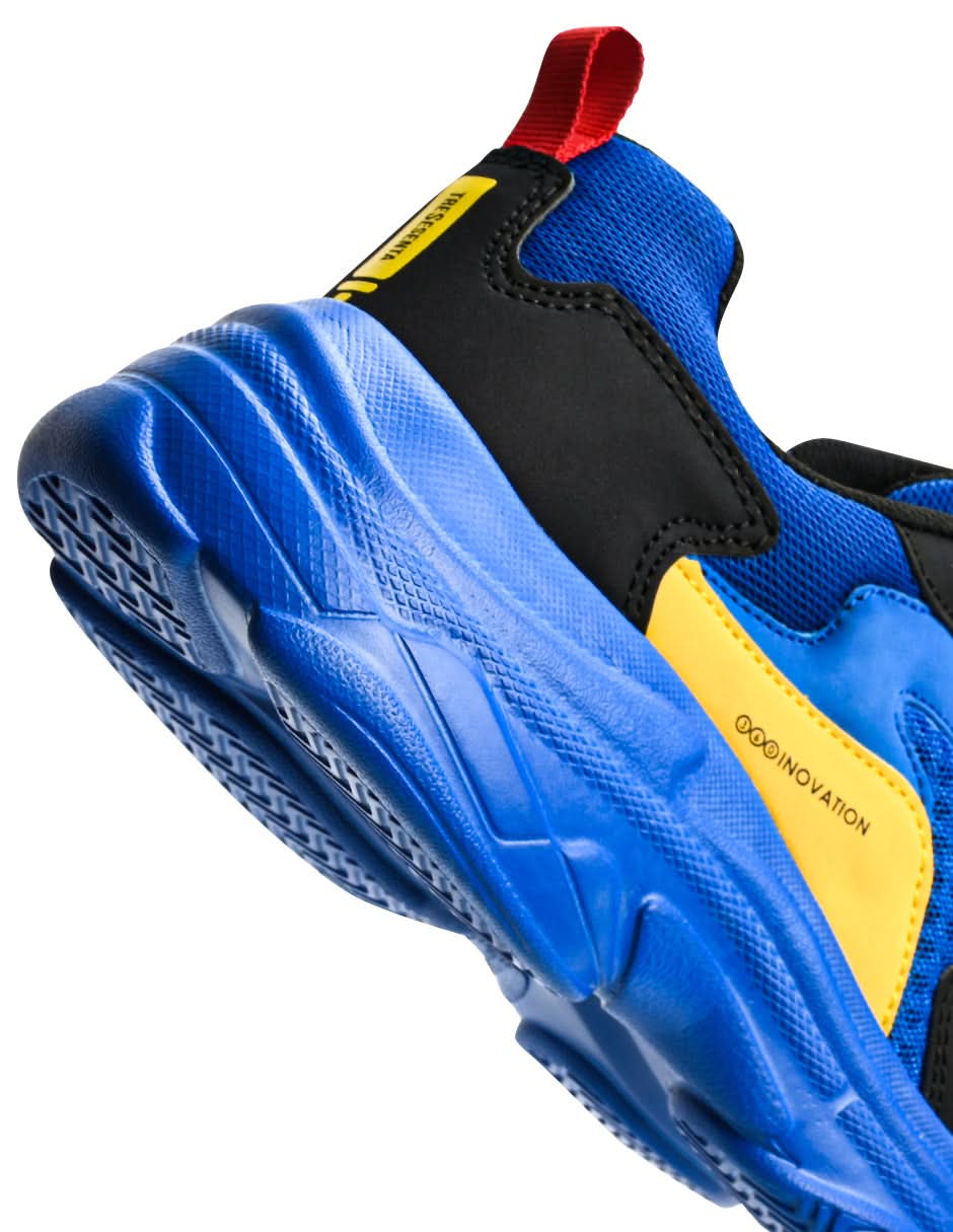 Atrapa miradas con los Tenis Luxus, diseñados para la mujer moderna y dinámica. Este modelo chunky, con su explosión de azul eléctrico, negro intenso y vibrante amarillo, no solo te ofrece un look único, sino también una comodidad excepcional. ¡Experimenta la calidad y el diseño hecho en México!
